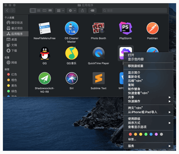 三、打開訪達(dá),在右側(cè)菜單欄選中應(yīng)用程序,找到和彩云圖標(biāo),右鍵點(diǎn)擊打開