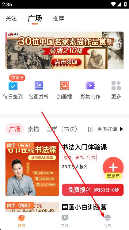1、打開(kāi)及象教育,點(diǎn)擊底部導(dǎo)航欄中的我的選項(xiàng)。