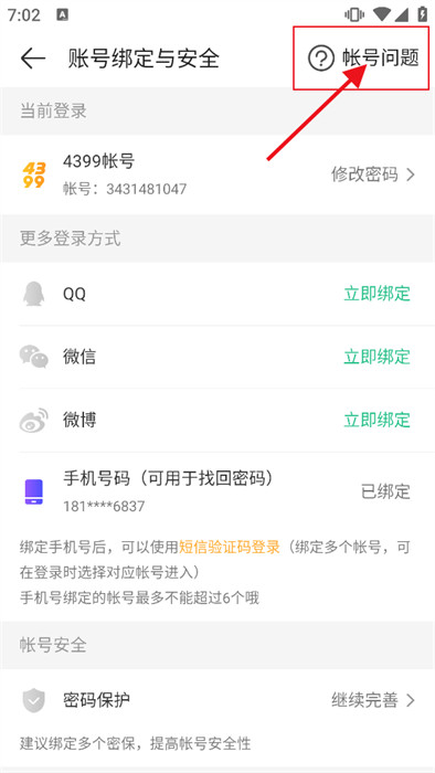 4、再次跟著小編找到右上角【賬號(hào)問題】,如下圖所示;