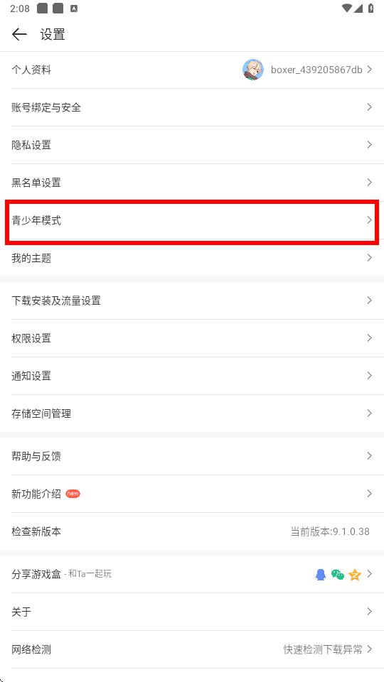 2、在設(shè)置界面中找到青少年模式選項(xiàng)并點(diǎn)擊進(jìn)入。