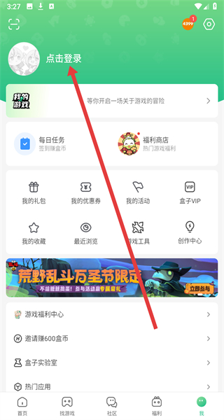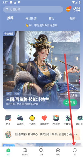 1、在進(jìn)入到433游戲盒首頁中,可以點(diǎn)擊下方我按鈕,進(jìn)入我的主頁。
