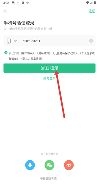 3、在進(jìn)入到手機(jī)號(hào)驗(yàn)證登錄界面,輸入好手機(jī)號(hào)后點(diǎn)擊驗(yàn)證并登錄按鈕。