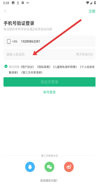 4、在獲取到驗(yàn)證碼后,點(diǎn)擊輸入框填寫驗(yàn)證碼再次點(diǎn)擊驗(yàn)證并登錄按鈕,即可完成登錄。