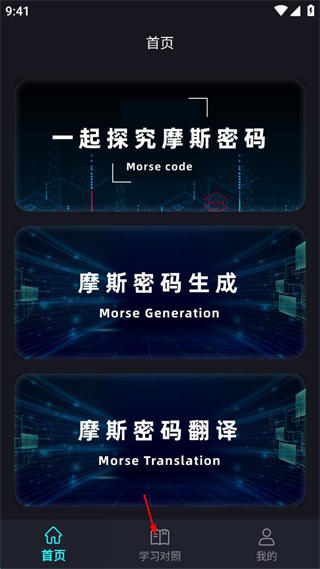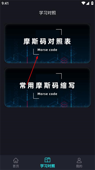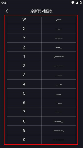 2、點擊“摩斯碼對照表”選項,進入摩斯碼對照表界面。