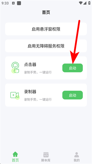 1、打開章魚自動點擊器,點擊點擊器右側啟動,開啟點擊器功能。