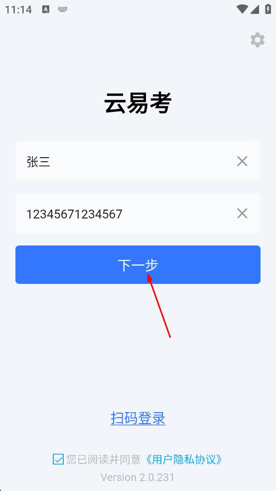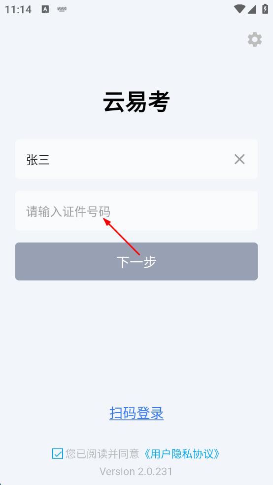 4、證件號碼輸入完畢后,點擊“下一步”按鈕,按照后續(xù)提示完成剩余的登錄流程,即可成功登錄云易考。