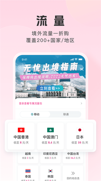 中國(guó)移動(dòng)推出的“無(wú)憂行”APP是一個(gè)一站式出行服務(wù)平臺(tái),并提供出境通訊服務(wù),能為短、中、長(zhǎng)期在境外的朋友們提供便利,解決各種各樣因?yàn)榭鐕?guó)導(dǎo)致的通訊困難,并提供出行者急需的海外生活服務(wù)。
