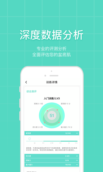 在您整個(gè)訓(xùn)練周期,我們可以計(jì)算您盆底肌的多項(xiàng)數(shù)據(jù)指標(biāo),并且給出建議和知道。
