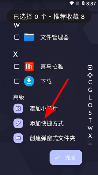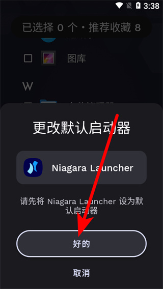 1、在Niagara Launcher應(yīng)用列表頁面,點擊添加快捷方式選項,彈出更改默認啟動器提示框。
