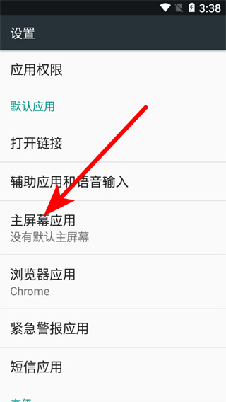 3、在設(shè)置頁面,點擊主屏幕應(yīng)用選項,彈出主屏幕應(yīng)用選擇框。