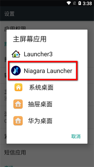 4、在選擇框中,點擊Niagara Launcher選項,即可將其設(shè)置為默認啟動器。