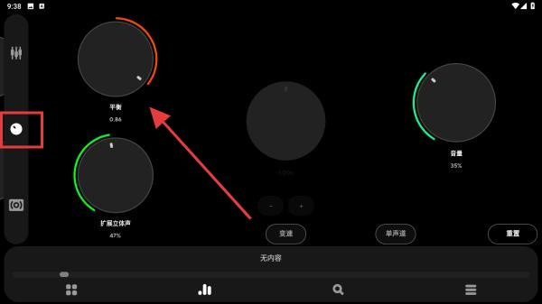 3、切換至第二個調(diào)節(jié)的頁面內(nèi),可推動平衡、擴(kuò)展立體聲、音量的按鈕。