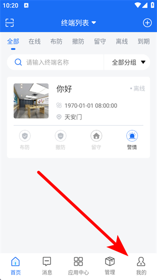 1、打開智慧安防,點擊右下角我的,進入個人功能頁面。