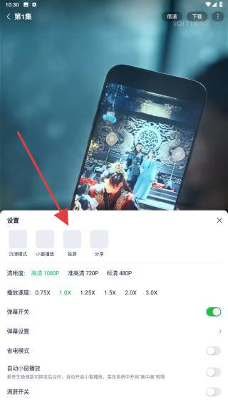 3、在展開(kāi)的菜單中,找到并點(diǎn)擊投屏的功能選項(xiàng),即可開(kāi)始投屏。