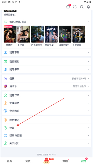 1、打開(kāi)愛(ài)奇藝APP,在首頁(yè)導(dǎo)航欄中點(diǎn)擊我的按鈕。