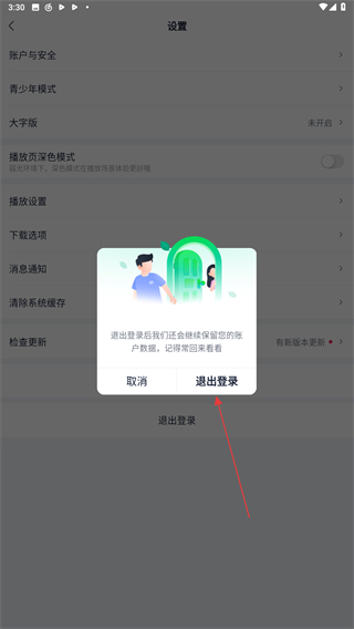4、當(dāng)界面內(nèi)彈出提示后,點(diǎn)擊退出登錄的按鈕即可。