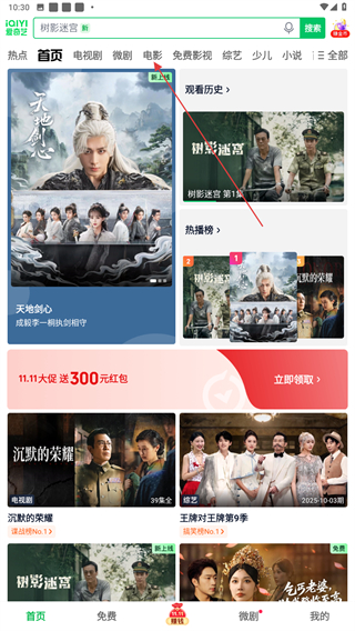 4.《天地劍心》《樹(shù)影迷宮》《沉默的榮耀》《一笑隨歌》《命懸一生》《赴山?!贰恫幻呷铡贰赌暇┱障囵^》等熱門影視綜盡在愛(ài)奇藝極速版