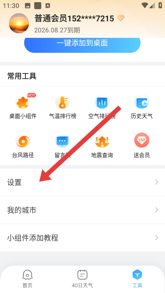 1、打開2345天氣王APP,切換至底部導(dǎo)航欄的工具頁面,點(diǎn)擊設(shè)置選項(xiàng),進(jìn)入設(shè)置界面。