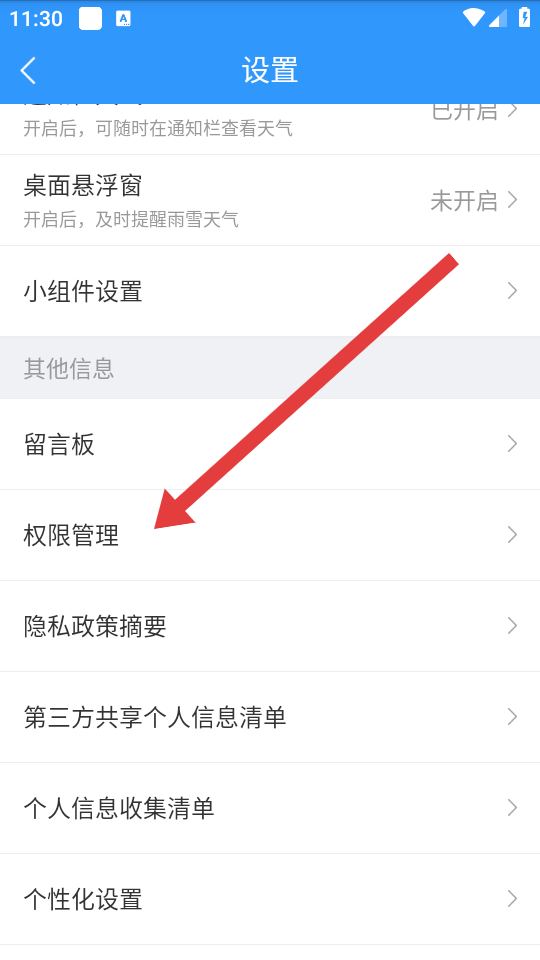 2、在設(shè)置的頁面中,點(diǎn)擊權(quán)限管理的選項(xiàng),然后進(jìn)入系統(tǒng)權(quán)限設(shè)置的界面。