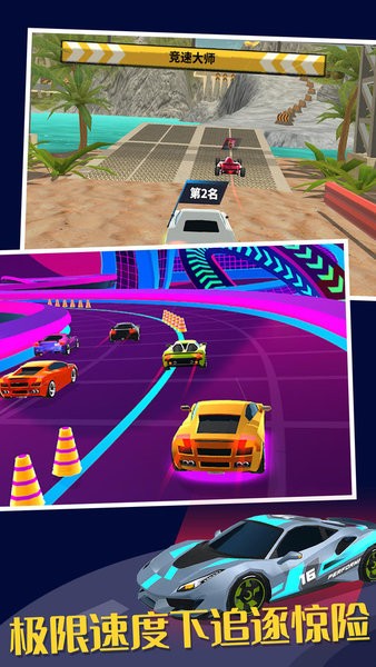 做好迎接一切的準(zhǔn)備吧!在這里,你將永遠(yuǎn)不知道自己下一次過彎時(shí)會(huì)遇見什么,緊踩油門,躲避那些花樣無窮無盡的障礙物,努力避開那些跟你一樣瘋狂的對手,在這超級快速、刺激、迷幻風(fēng)格的賽道上,隨時(shí)隨地都有讓你料想不到的新鮮東西,無論你想要速度、刺激還是豪車,這里應(yīng)有盡有!