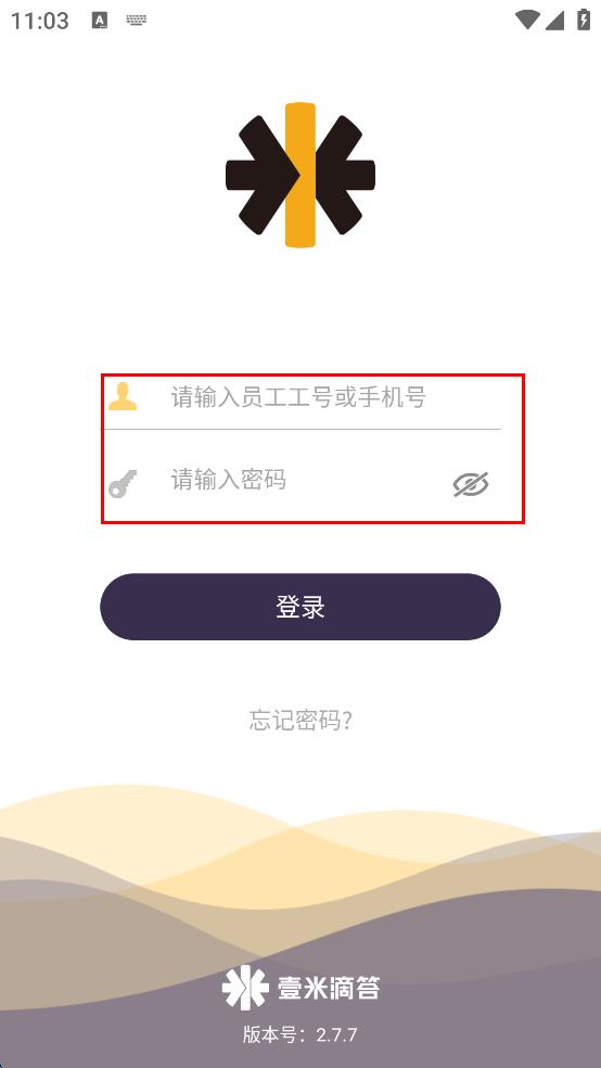 1、打開壹米滴答APP,進(jìn)入登錄頁(yè)面,輸入員工工號(hào)或手機(jī)號(hào),再輸入密碼。