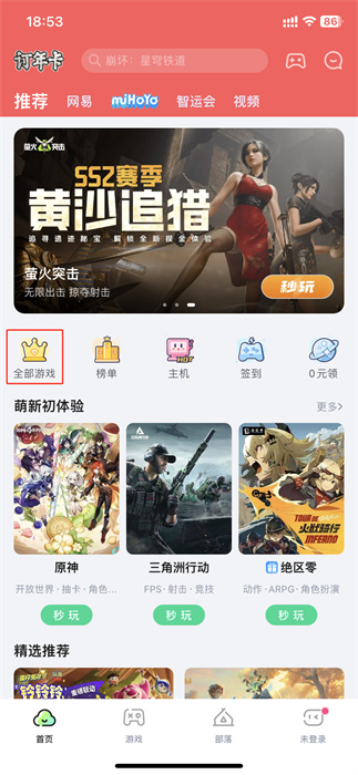 1、點(diǎn)擊【全部游戲】按鈕,以進(jìn)行游戲分類的查看;