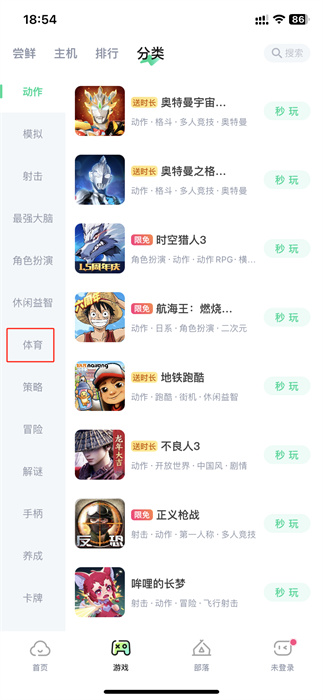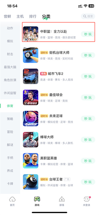 2、此時(shí)玩家將可以點(diǎn)擊一個(gè)自己喜歡的游戲分類來(lái)進(jìn)行游戲的查看,如【體育】類游戲;