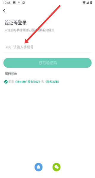 3、在進(jìn)入到驗(yàn)證碼登錄頁(yè)面中時(shí),可以點(diǎn)擊輸入框輸入手機(jī)號(hào),進(jìn)行獲取驗(yàn)證碼登錄。
