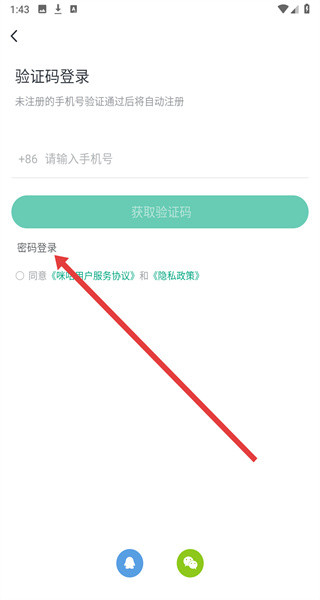 3、在登錄頁(yè)面點(diǎn)擊“密碼登錄”,進(jìn)入密碼登錄頁(yè)面。