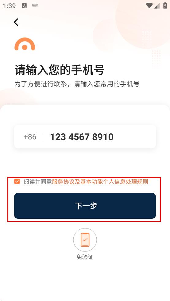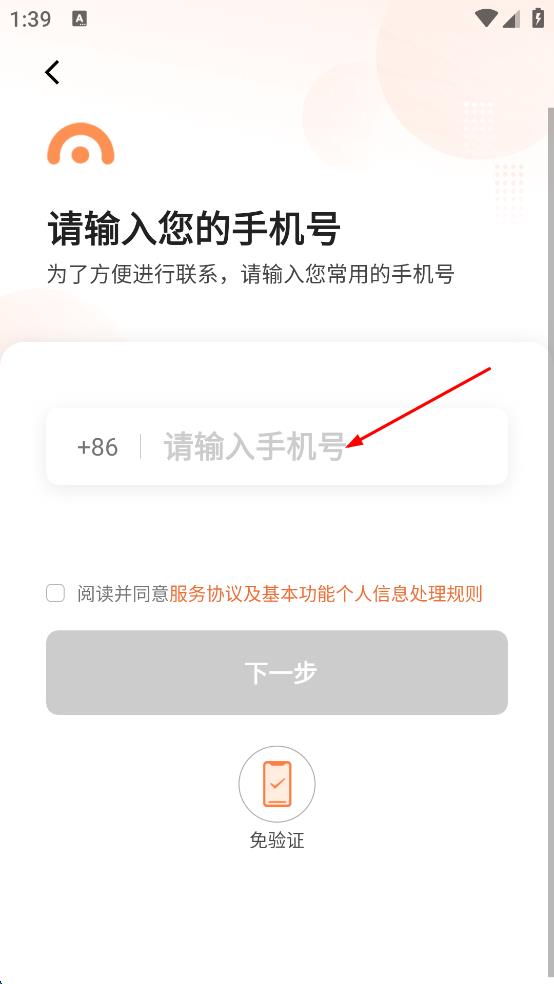 3、在手機(jī)號輸入頁面,在指定輸入框中輸入要使用的手機(jī)號。