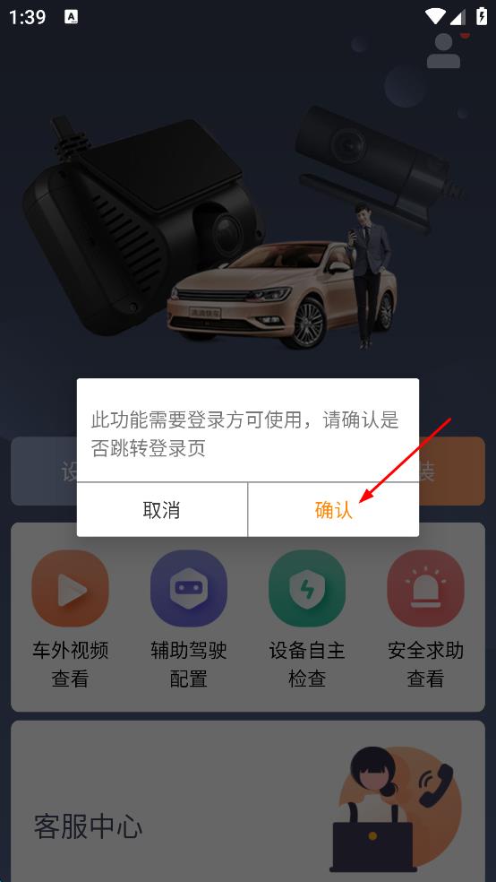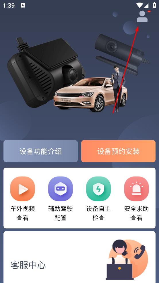 1、打開汽車設(shè)備服務(wù)軟件,進(jìn)入主界面后,點(diǎn)擊頁面右上角的人形圖標(biāo),彈出功能使用提示框。