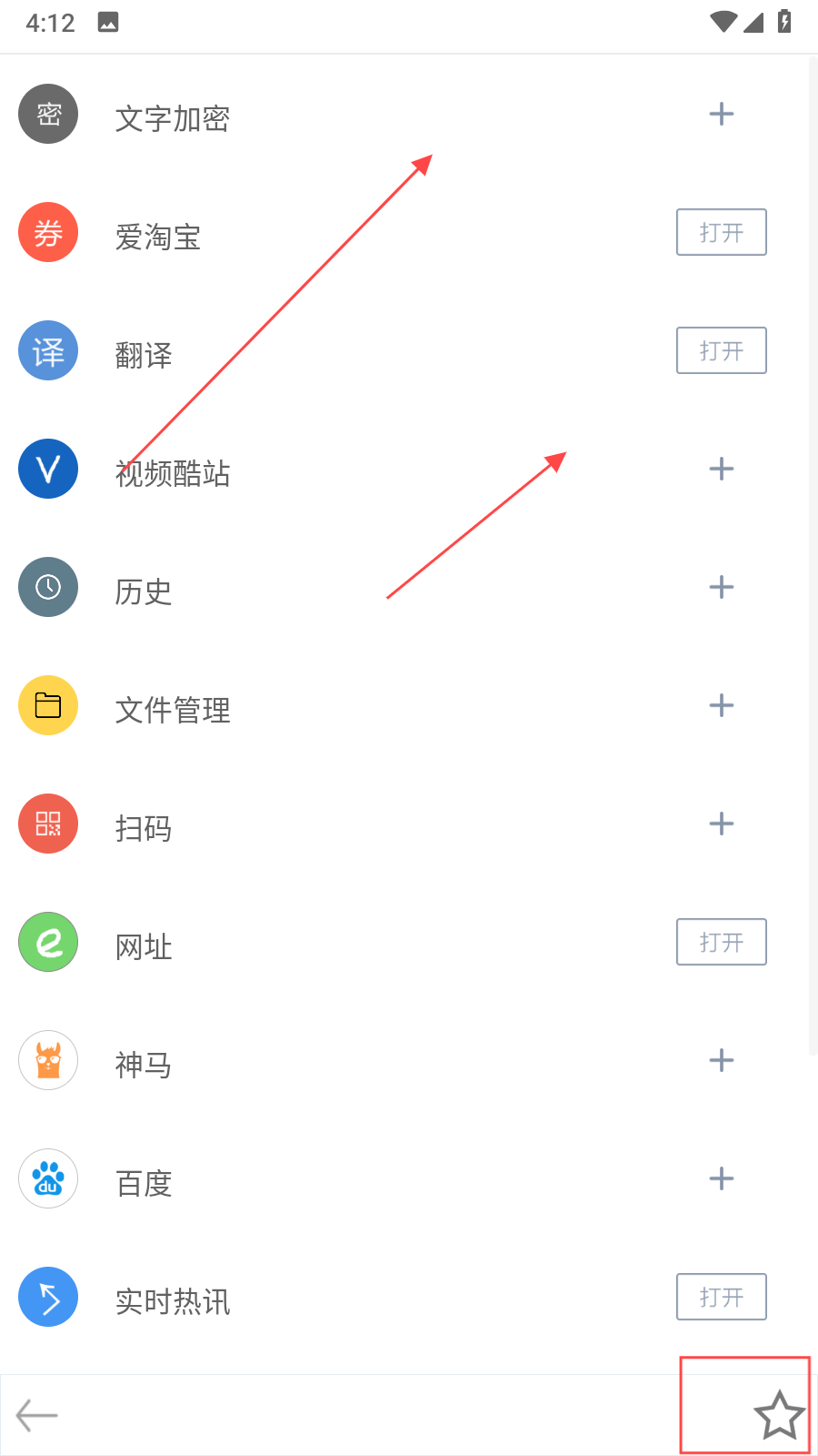 3、在功能列表里,有文字加密、愛淘寶、翻譯、視頻酷站等功能入口,點擊“文字加密”可對文字進行加密操作,點擊視頻酷站可進入相關視頻站點,滿足不同的使用需求。