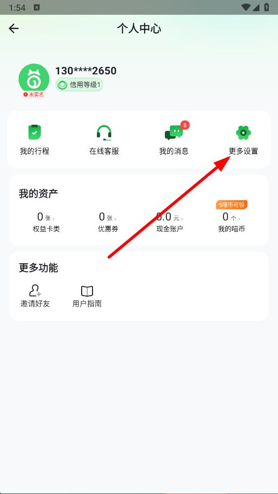 2、在個(gè)人中心頁面里,點(diǎn)擊更多設(shè)置選項(xiàng),進(jìn)入設(shè)置界面。