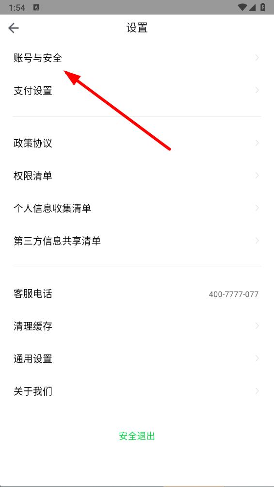 3、在設(shè)置界面中,找到并點(diǎn)擊賬號(hào)與安全選項(xiàng)。