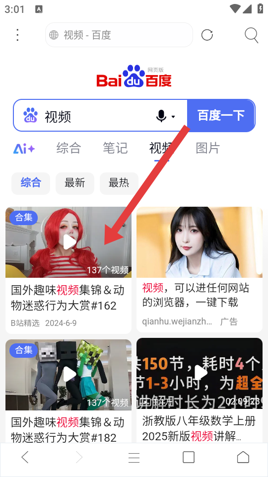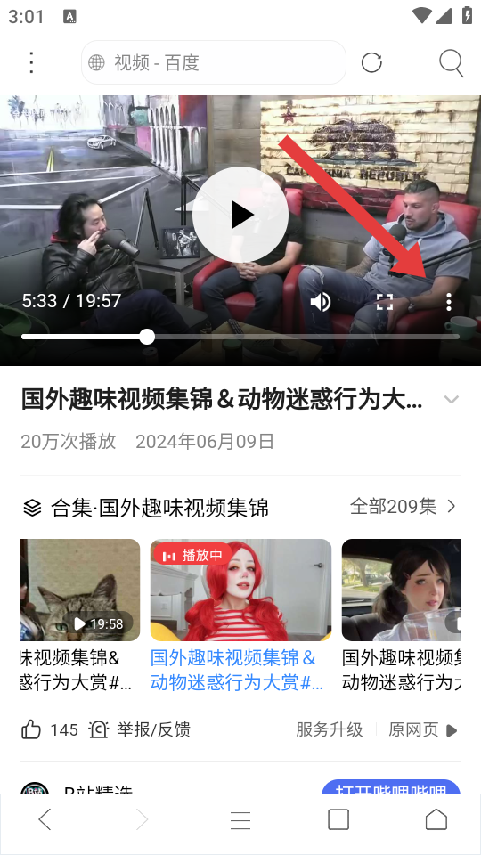 1、在米俠瀏覽器中搜索并找到要下載的視頻,然后點(diǎn)擊進(jìn)入視頻播放的界面。