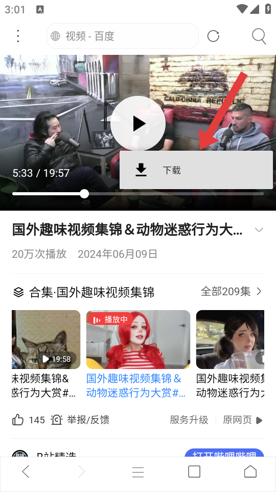 3、在彈出的選項(xiàng)中,我們點(diǎn)擊下載的按鈕,就可以將需要的視頻下載到本地。