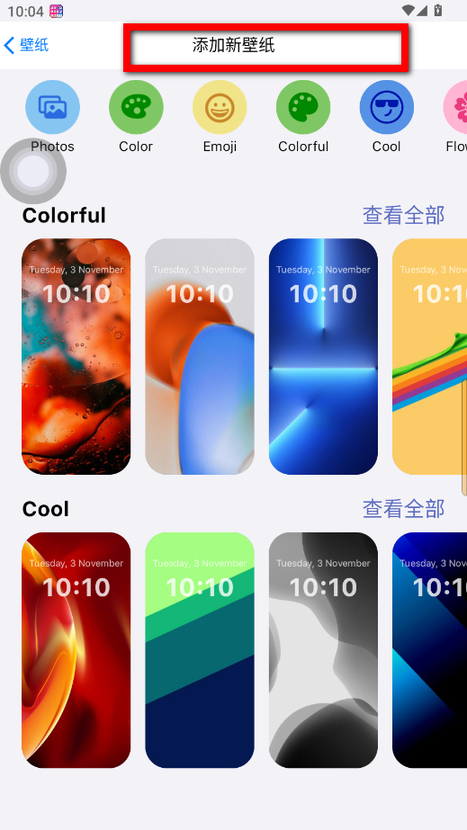 4、在添加新壁紙頁面,選擇喜歡的壁紙,即可完成換壁紙操作。