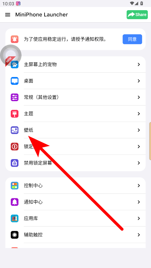 2、進(jìn)入應(yīng)用后,在界面中找到并點(diǎn)擊壁紙選項(xiàng)。
