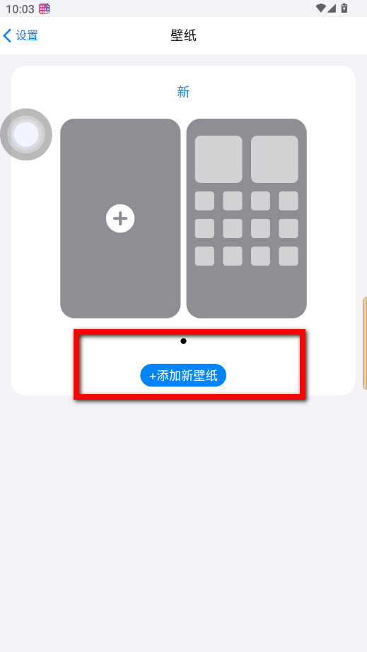 3、在壁紙?jiān)O(shè)置界面,點(diǎn)擊+添加新壁紙按鈕。