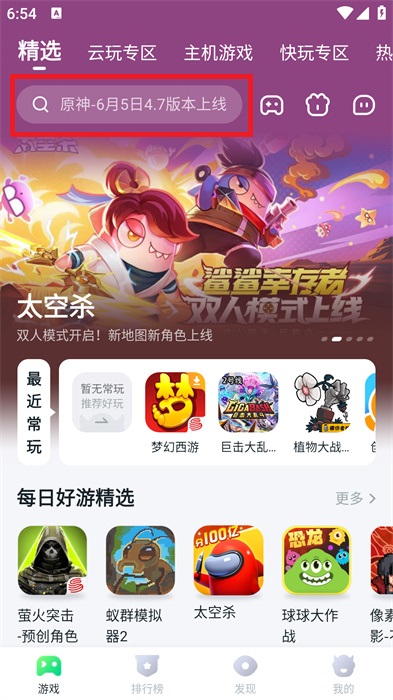 1、首先玩家需要下載最新版本的870游戲盒,然后進(jìn)入到軟件界面,在界面中點(diǎn)擊上方的【搜索框】;