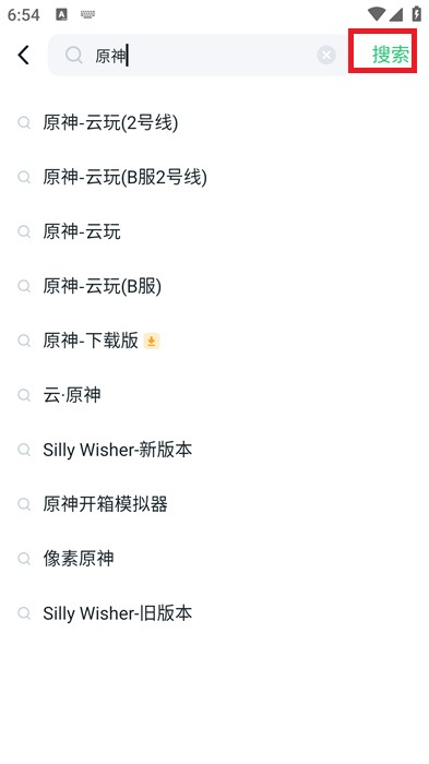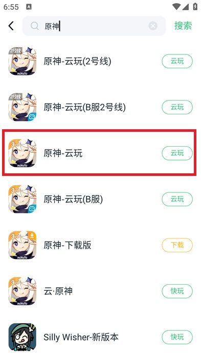 3、在搜索結(jié)果出來之后,我們點(diǎn)擊【原神-云玩】,點(diǎn)擊右邊的【云玩】進(jìn)行體驗(yàn);