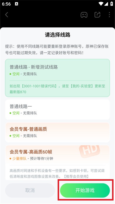 4、點(diǎn)擊云玩之后,就會進(jìn)入到選擇路線的界面,在這里選擇自己想要的路線,然后點(diǎn)擊【開始游戲】開始體驗(yàn)。