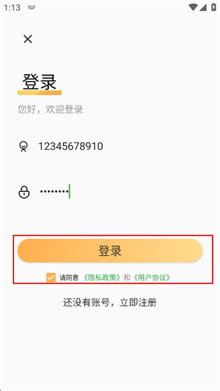 4、勾選同意隱私政策和用戶協(xié)議后點擊“登錄”按鈕,完成登錄操作。