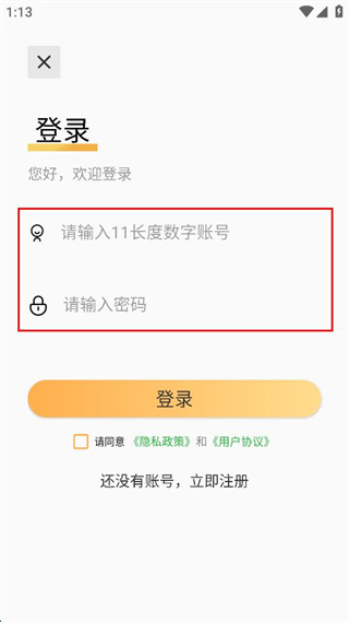 3、在登錄界面,輸入11長度數(shù)字賬號和密碼。
