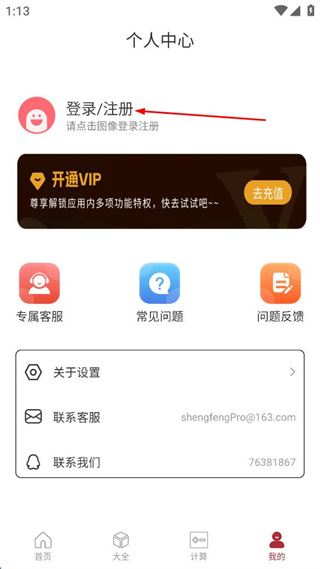 2、在個人中心界面,點擊“登錄/注冊”區(qū)域,進入登錄界面。