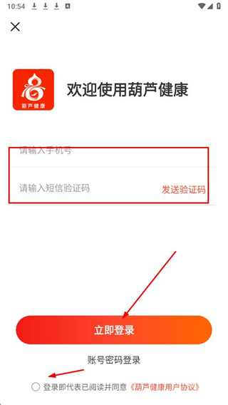 3、輸入手機(jī)號、短信驗證碼,勾選協(xié)議后,點(diǎn)擊立即登錄,完成賬號登錄操作。