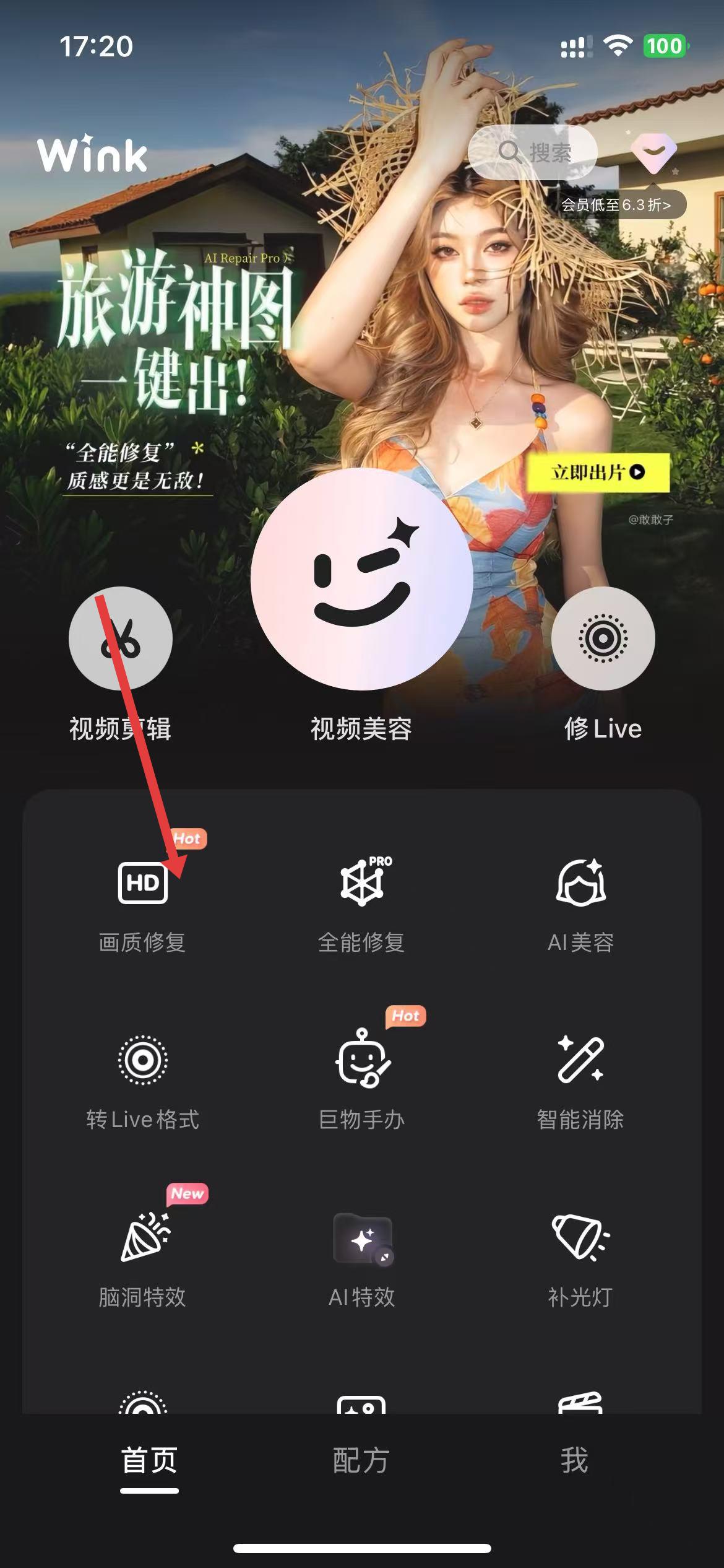 1、打開Wink App,進入主界面,點擊畫質(zhì)修復選項。