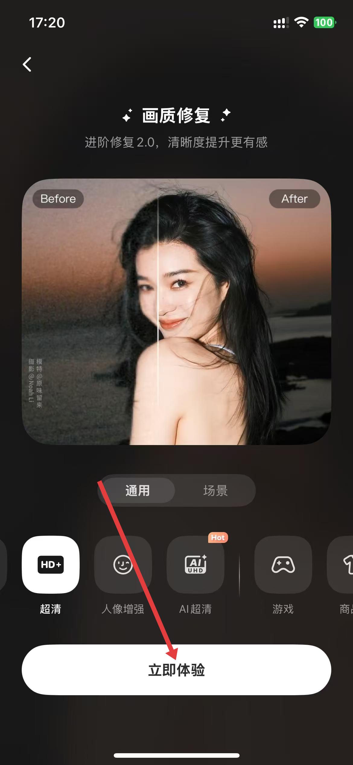2、點擊后跳轉(zhuǎn)畫質(zhì)修復頁面,點擊下方立即體驗。