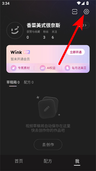 1、打開WinkAPP,點擊右下角我,進入個人頁面后點擊右上角設置圖標。