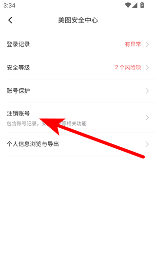 4、在美圖安全中心頁面中找到注銷賬號選項并點擊,按提示完成操作即可注銷賬號。